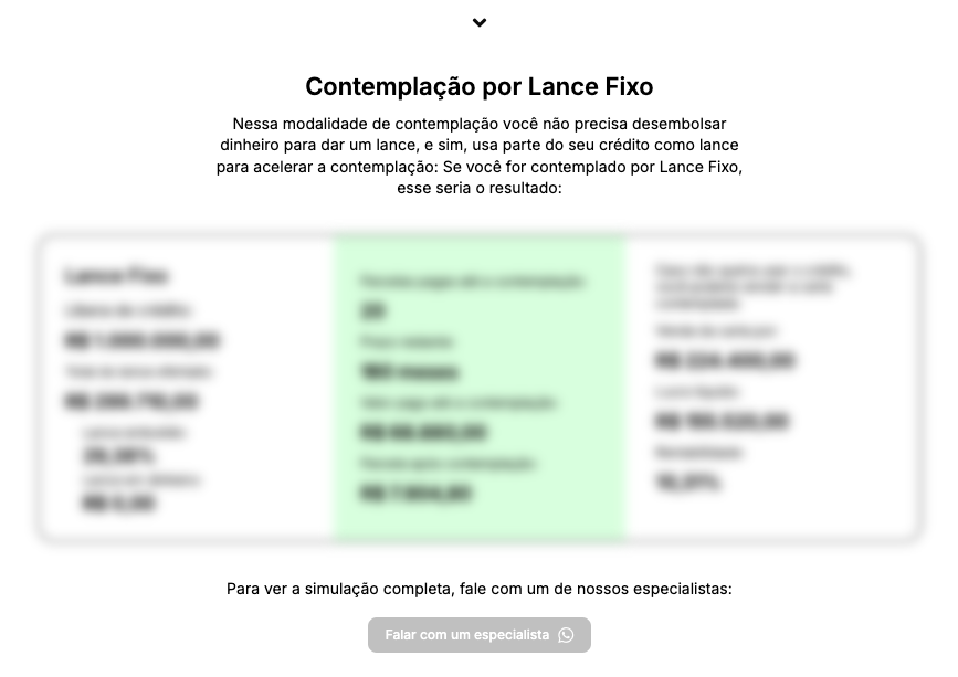 Faça uma simulação de teste pra comparar: as simulações e propostas da Novo Consórcio são pensadas nos mínimos detalhes para serem o mais explicativas e persuasivas o possível. Com elas, seus clientes conseguem entender o que acontece se forem contempladas em diferentes meses, deixando a decisão de comprar ou não o consórcio muito mais fácil e certeira.